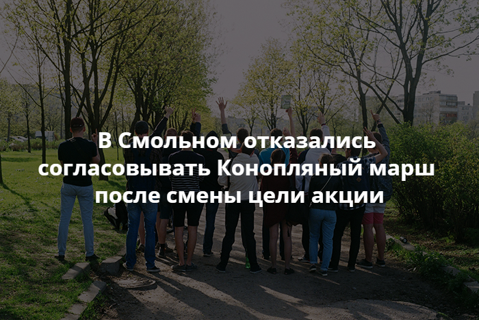 По словам Чаплыгина, активисты изменили цель акции с «гуманизации уголовного законодательства в отношении потребителей наркотических средств» на «гуманизацию уголовного законодательства». Но в Смольном решили не согласовывать акцию, потому что, как сообщает Чаплыгин, тема завуалированно пропагандирует наркотики.