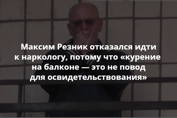 После публикаций депутат Госдумы Виталий Милонов попросил Резника пройти проверку у нарколога. Максим Резник на своей странице в фейсбуке рассказал, что «курение на балконе — это не повод для освидетельствования», поэтому он не планирует идти к наркологу.