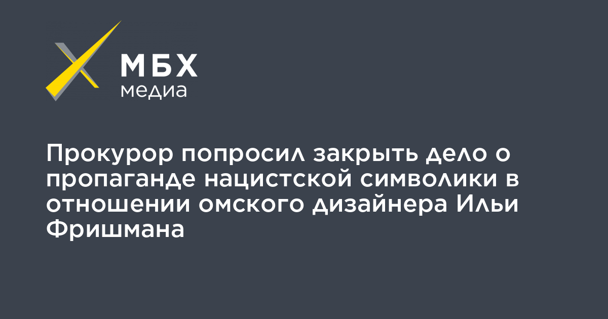 Прокурор попросил закрыть дело о пропаганде нацистской символики в отношении омского дизайнера Ильи Фришмана. По мнению прокуратуры, в его действиях нет «состава административного правонарушения». Соответствующий документ предоставил «МБХ медиа» сам Фришман.