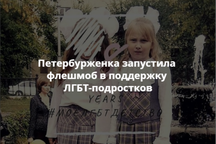 Петербурженка Саша Казанцева, которая ведет телеграм-канал «Помыла руки» о сексуальной жизни лесбиянок, запустила флешмоб в поддержку ЛГБТ-подростков. Чтобы помочь молодым людям принять себя, пользователи инстаграма выкладывают свои детские фотографии с хештегами #моеЛГБТдетство и #чтовыросло, а также рассказывают свои истории.
