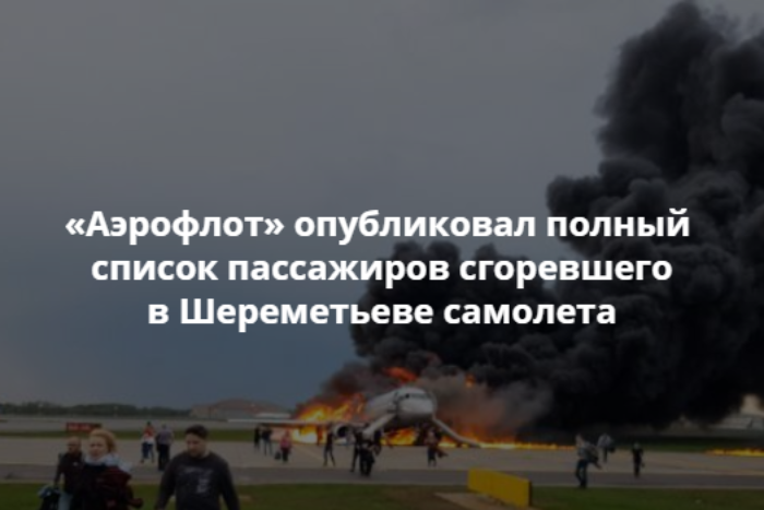 Авиакомпания «Аэрофлот» опубликовала на официальном сайте полный список пассажиров, находившихся на борту сгоревшего в аэропорту Шереметьево самолета.