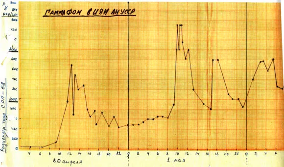 …На период подготовки демонстрации 1 мая учащимся школ были выданы тренировочные костюмы, в которых они репетировали программу 27, 28, 29 мая (апреля. — Б. Ж.). С 5 по 8 мая эти костюмы были сданы в школы. Одежда имеет довольно высокий уровень фона. Школы намерены сдать костюмы в дворец пионеров. НЕОБХОДИМА ДЕЗАКТИВАЦИЯ