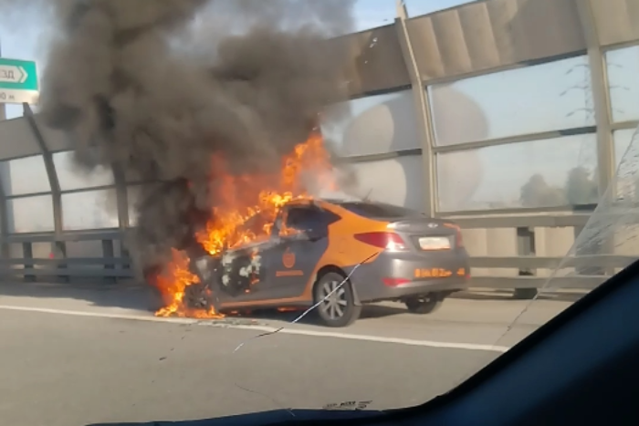 На съезде с КАД в Петербурге горел каршеринговый автомобиль