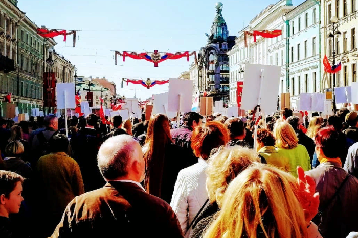 Тысячи петербуржцев идут по Невскому с портретами участвовавших в войне родственников