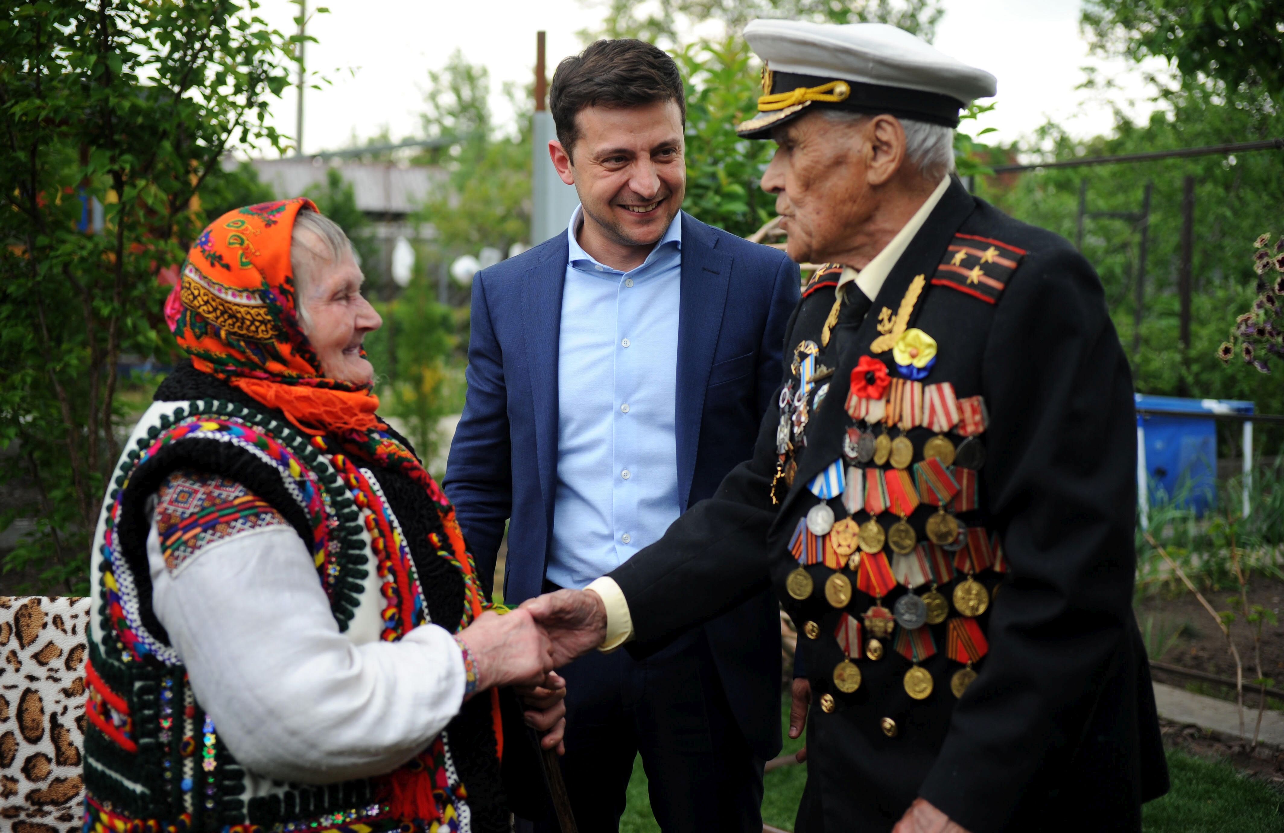 9 мая Зеленский опубликовал в Фейсбуке своё фото на могиле деда, ветерана войны. Он отметил, что для него 9 мая – день благодарности победившим нацизм, и подчеркнул вклад украинцев в победу и недопустимость её "приватизации". "Будем жить!" – завершил свой текст Зеленский цитатой из фильма "В бой идут одни старики".