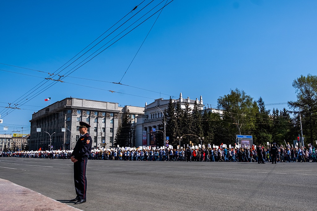 Колонна новосибирцев стартовала от Октябрьской магистрали в сторону Дома офицеров после окончания военного парада. Организаторы отчитались о 240 тыс. участников шествия. Фоторепортаж Кирилла Канина.