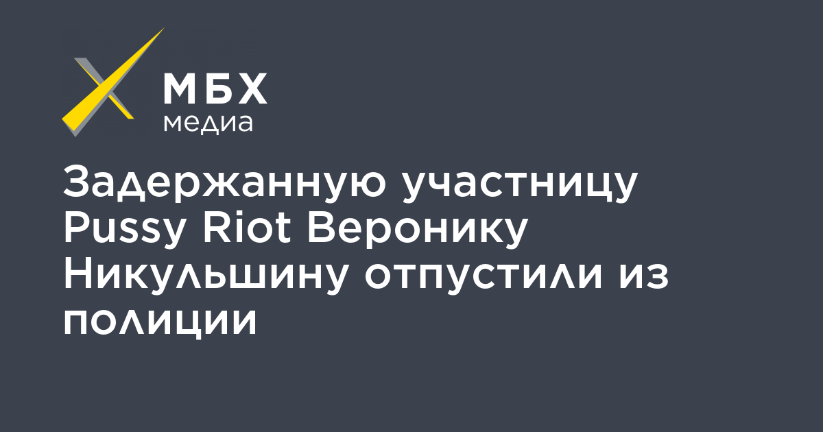 В Москве задержанную вместе с друзьями два дня назад участницу Pussy Riot Веронику Никульшину отпустили из отдела полиции, сообщил основатель группы Петр Верзилов у себя в Twitter.