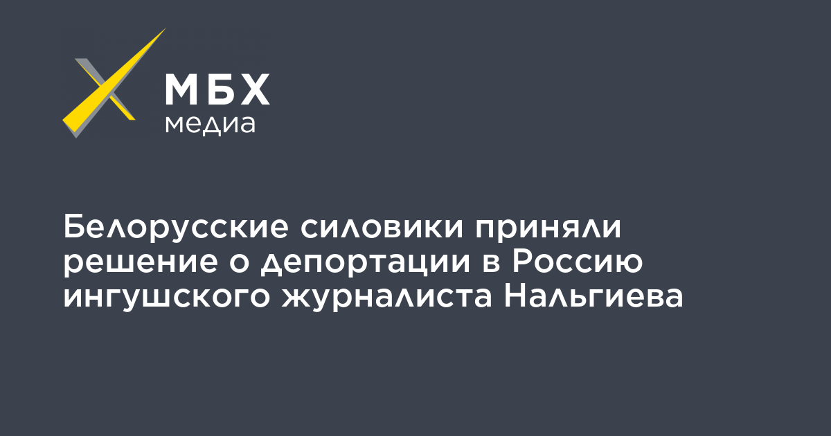 Белорусские силовики приняли решение о депортации задержанного в Минске ингушского журналиста Исмаила Нальгиева, об этом «МБХ медиа» сообщил его адвокат Антон Гашинский.