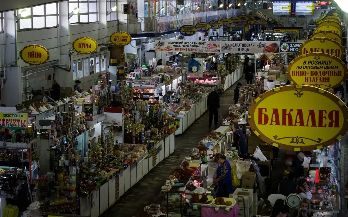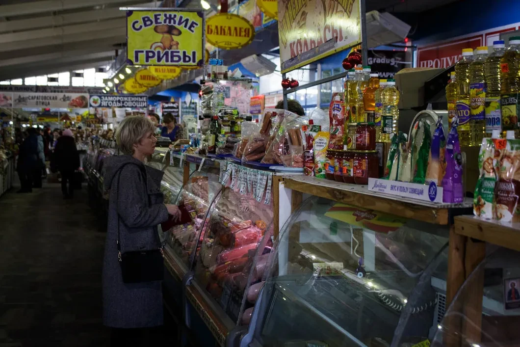 «Я не продавщица. Я — работник торговли», — строго говорит Юлия, возвышаясь над блестящей витриной. На продовольственном рынке Юлию знают все: она торгует московской колбасой, которую многие жители окраины Саратова покупают только по праздникам.