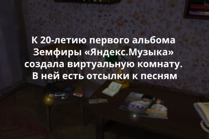 «Яндекс.Музыка» создала виртуальную комнату в честь первого альбома Земфиры