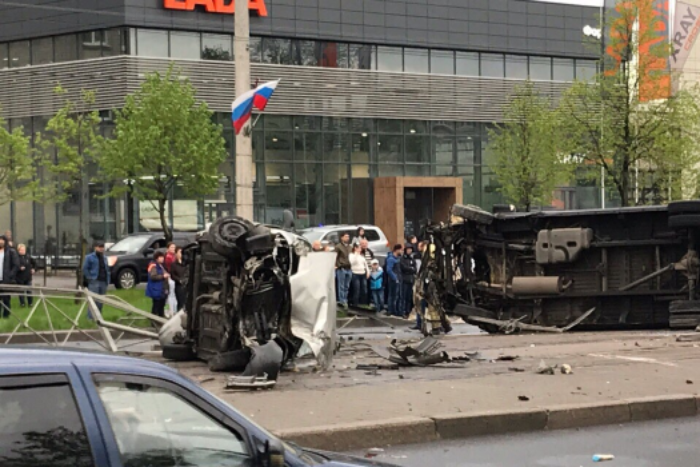 Авария на Бухарестской улице произошла вечером 11 мая. В соцсетях очевидцы писали, что легковой автомобиль врезался в микроавтобус и трамвай. Машина и маршрутка перевернулись, у трамвая пробита боковина.