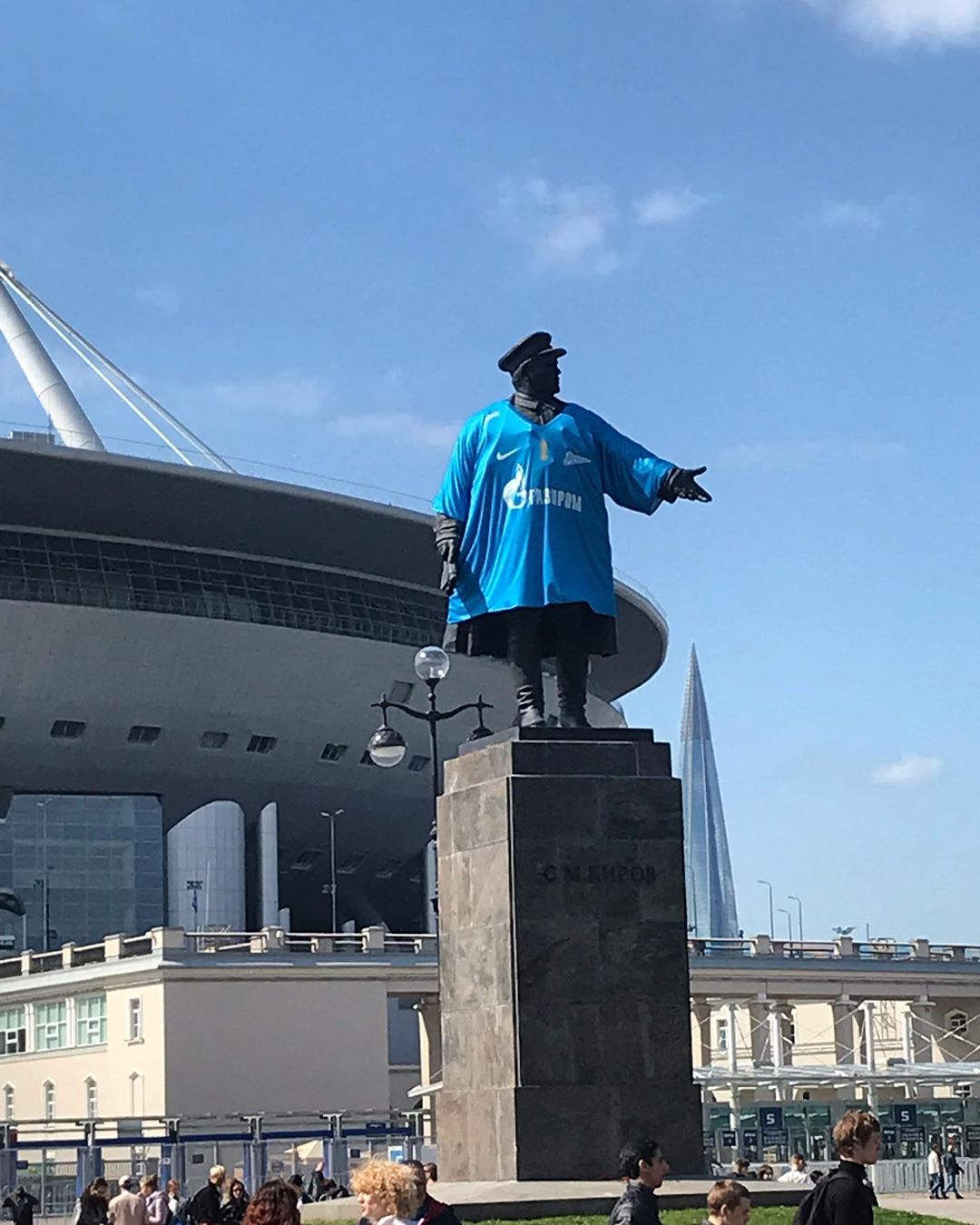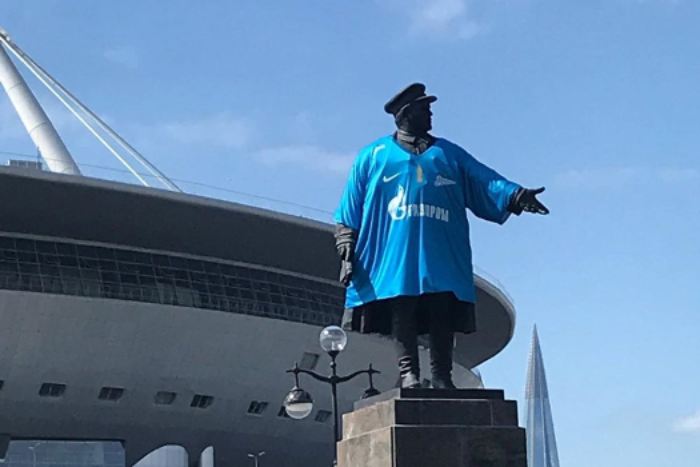 Памятник первому секретарю Ленинградского обкома ВКП(б) Сергею Кирову у стадиона «Газпром Арена» в Петербурге одели в футболку «Зенита». Об этом сообщили очевидцы.