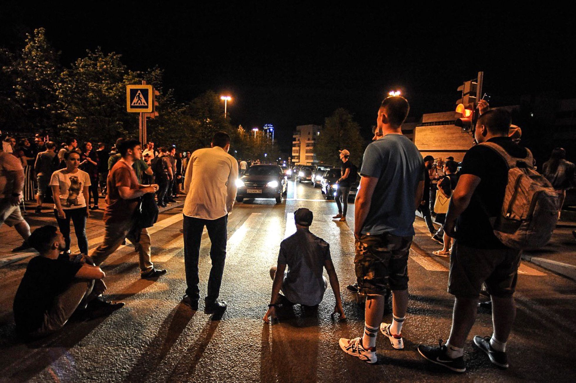 Протестующие против строительства храма в Екатеринбурге попытались перекрыть улицу. Фотография