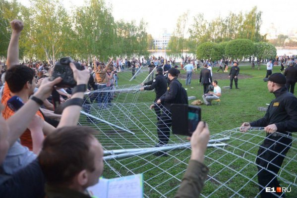 Ночью часть территории сквера огородили забором. Днем протестующие прорвали ограждение и пошли гулять по скверу. Некоторые из них стали устанавливать в парке палатки. Полиция не стала задерживать людей.
