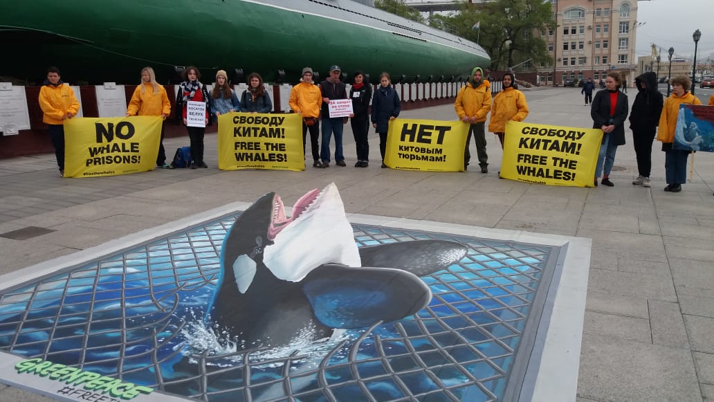 По подсчётам Зыряновой, в пикете поучаствовали примерно 30 человек. "Жаль, прохожих было мало, но это объяснимо – все-таки понедельник, рабочее время. Однако было важно пикет провести именно сегодня, так как 13 мая "Гринпис" привёз во Владивосток 3D-косатку, копию уличного рисунка из Москвы", – сообщила редакции "Сибирь.Реалии" Зырянова. Плакат, размещённый на Корабельной набережной столицы Приморья – точная копия объемного 3D-граффити, созданного уличным художником Philippenzo в Москве по заказу "Гринпис".