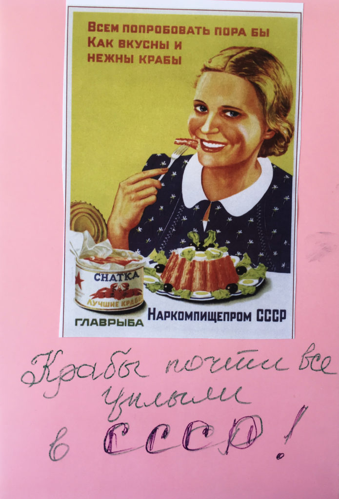 Самые последние “ответы” посвящены выставке Павла Пепперштейна в музее “Гараж”, где мы проводили экскурсии. В “Нашем ответе Пепперштейну” мы использовали образы из его творчества и отвечали на вопрос, что же будет с Россией через сто лет. Одним из пророчеств было высказывание, что через сто лет Ленина похоронят по-христиански. Оно было навеяно инсталляцией Пепперштейна с мавзолеем Ленина, лежащего рядом с обнаженной девушкой. Я думала, что бабушки удивятся мавзолею, но они очень спокойно отреагировали. Сказали, что “наконец-то у Ленина есть компания, что он не один лежит”. И добавили: “Ну, когда у Паши закончатся идеи, пусть он к нам в интернат приезжает, и к нему сразу много новых идей в голову придет, мы ему концерт организуем или что-нибудь еще”».