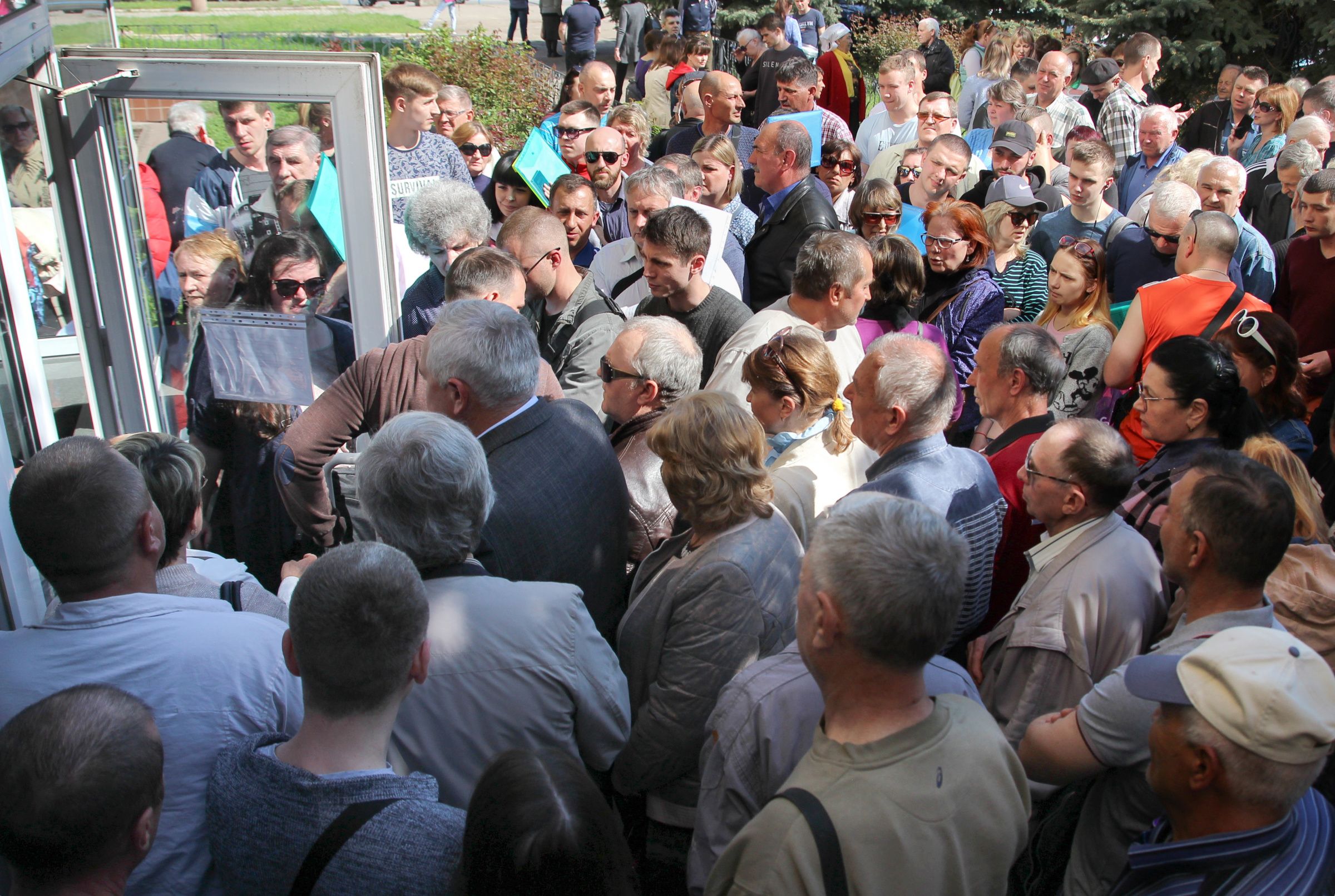 Александр Река / ТАСС / Scanpix / LETA Очередь перед открытием пункта по приему документов на гражданство РФ в Луганске. 6 мая 2019 года