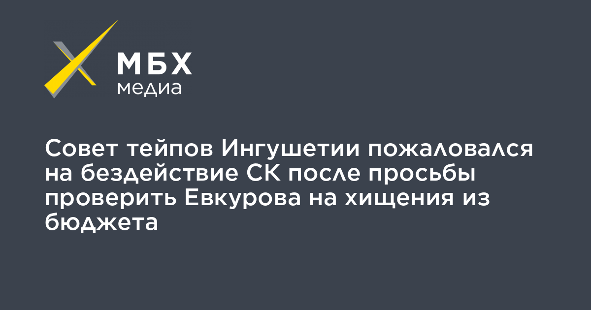Совет тейпов Ингушетии направил жалобу в Следственный комитет, поскольку ведомство не ответило за заявление с требованием проверить главу республики на хищения из бюджета. Об этом «МБХ медиа» сообщил адвокат Магомед Беков.
