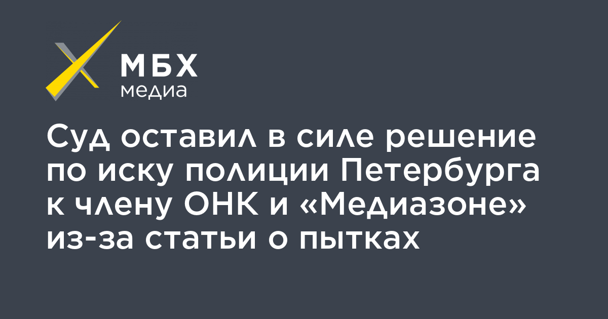 Суд оставил в силе решение по иску полиции Петербурга к члену ОНК и «Медиазоне» из-за статьи о пытках