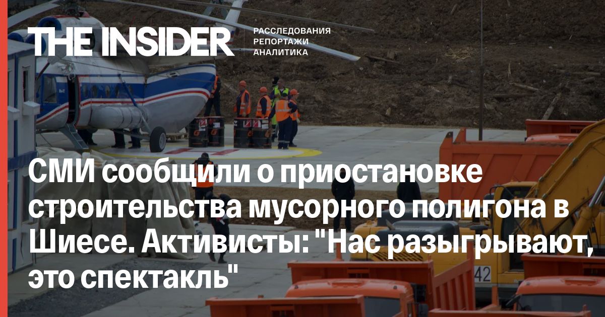 «Нас разыгрывают, это спектакль. Потому что вертолеты продолжают прилетать, Росгвардия осталась. Активные жители, которые на месте, говорят, что никто ничего не приостанавливал. Завезли топливо, строители разгружают песок», — рассказал The Insider председатель Совета депутатов МО «Урдомское» Александр Кравец. Он напомнил, что губернатор Архангельской области Игорь Орлов уже заявлял о завершении всех необходимых экспертиз.