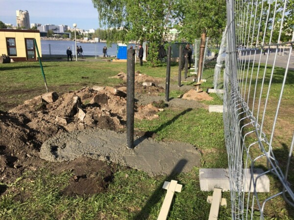 Вокруг зоны строительства храма в Екатеринбурге установили новый цельнометаллический забор