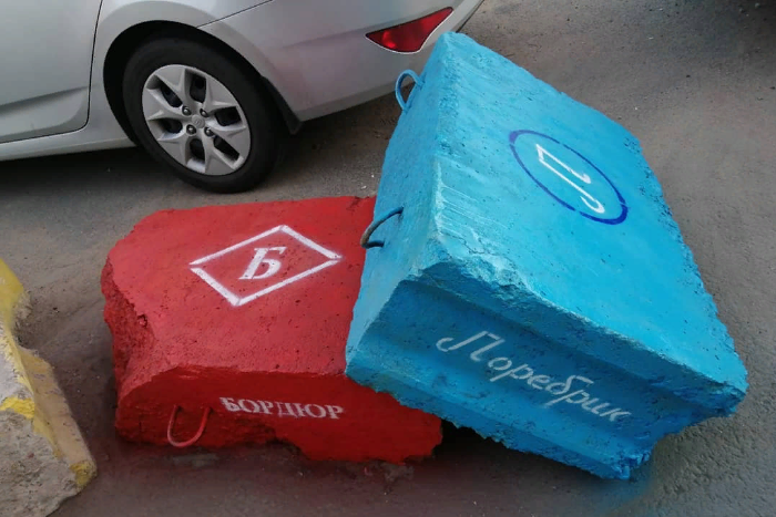 На улице Михаила Дудина на севере Петербурга установили памятник поребрику и бордюру.