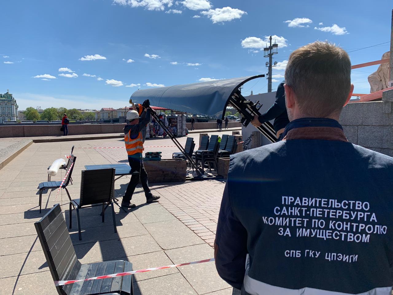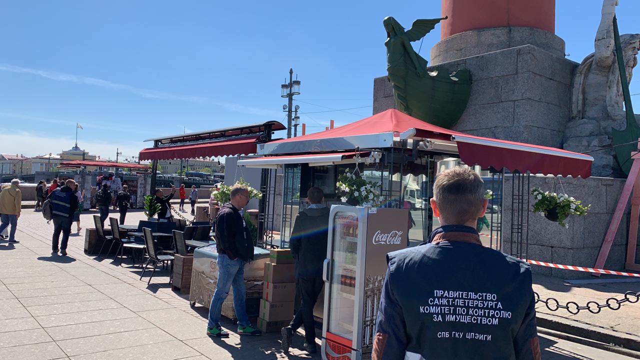 Также комитет по контролю за имуществом убрал летнее кафе на Биржевой площади, располагавшееся рядом с Ростральной колонной. Договор об аренде земли с кафе действовал до конца ноября 2018 года, однако владелец его не продлил.