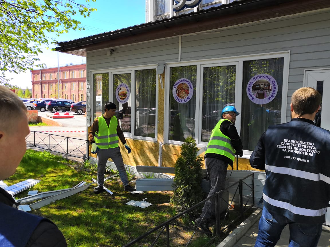 Петербургские власти начали рейд против незаконных пристроек. Снесли террасу в Петергофе и кафе на Биржевой площади