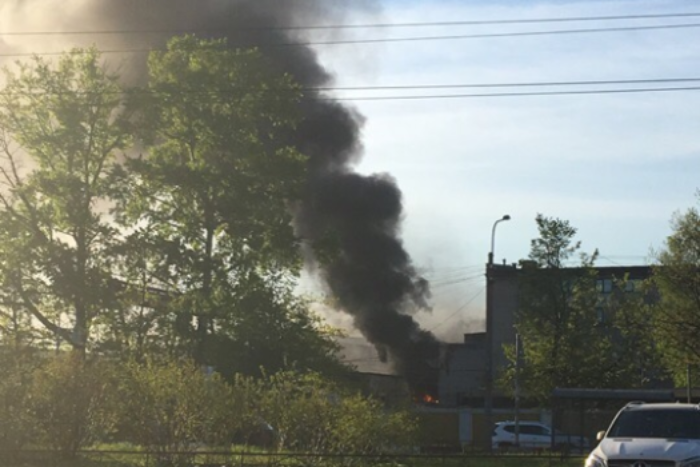 Издание 78.ru пишет, что горит ангар завода пластиковых изделий.