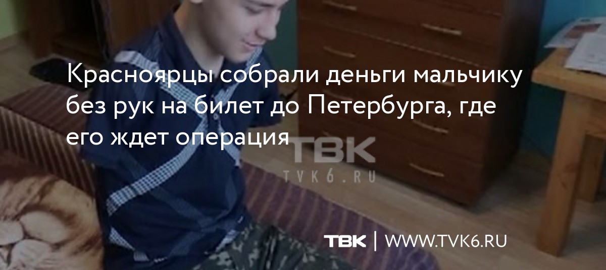 Красноярцы собрали деньги мальчику без рук на билет до Петербурга, где его ждет операция
