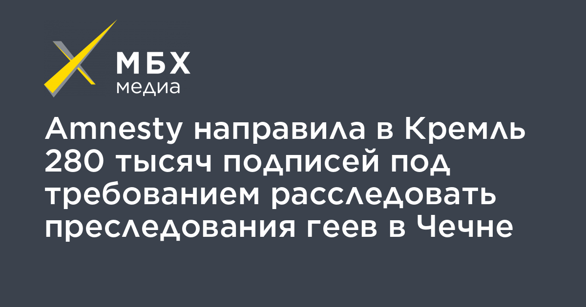Amnesty International передала в Кремль петицию, адресованную Владимиру Путину, с требованием расследовать преследования ЛГБТИ-сообщества в Чечне, говорится в пресс-релизе правозащитников.