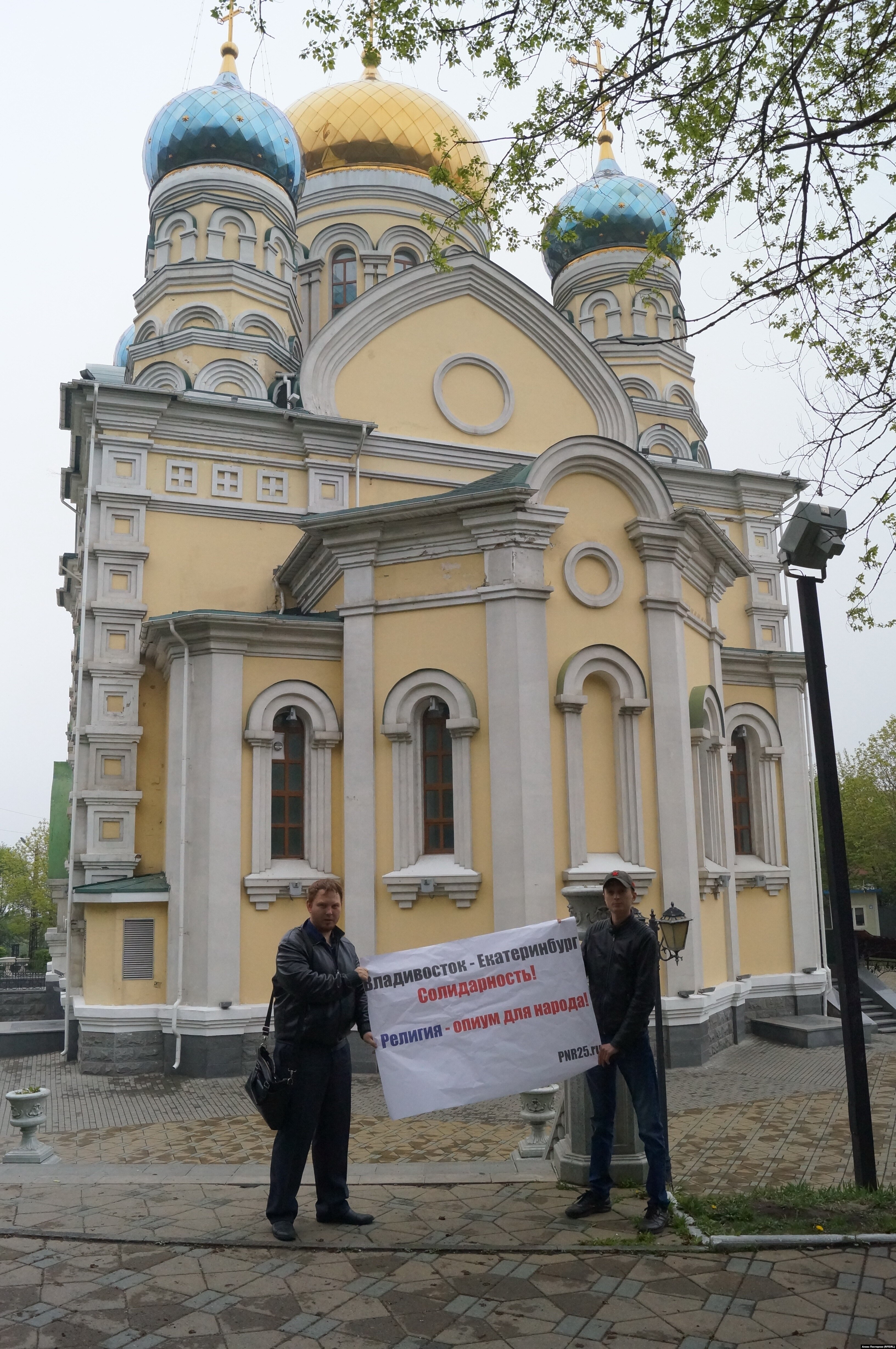Владивосток: провели пикеты у храмов в поддержку жителей Екатеринбурга