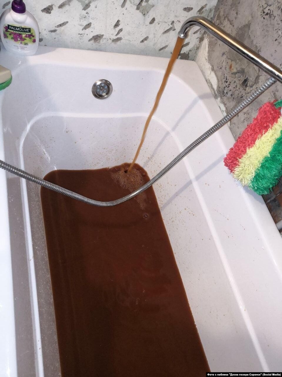 В Тюменской области жительница посёлка Яр Анастасия Горшенина пожаловалась местным чиновникам на то, что из кранов в многоквартирных домах течёт рыжая вода с запахом металла. По словам собеседницы Znak.com, эта ситуация продолжается "довольно давно" и сотрудники местной администрации на сходе жителей заявили, что никак не смогут решить проблему. В такой воде людям приходится купать детей, стирать вещи и мыть посуду.