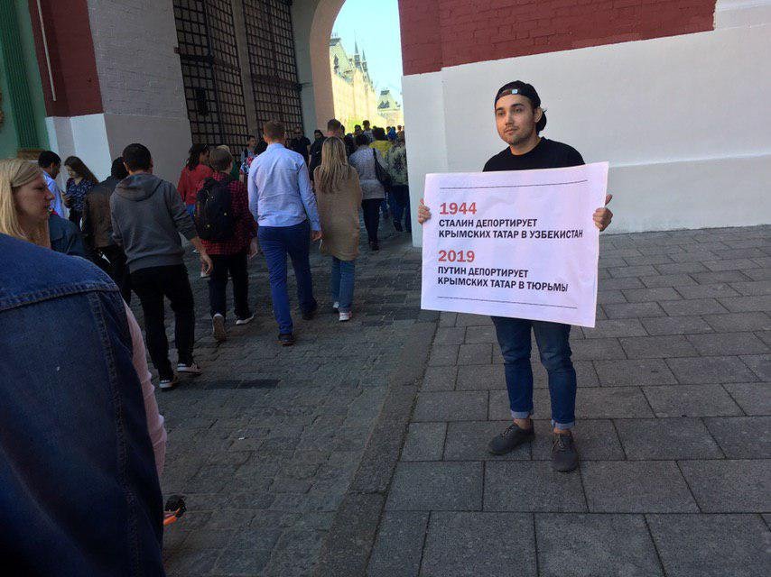 В Москве возле Красной площади задержали участника одиночного пикета Тимура Каримова, который держал плакат против преследований крымских татар. Об этом сообщает «ОВД-Инфо» со ссылкой на жену Каримова Татьяну.