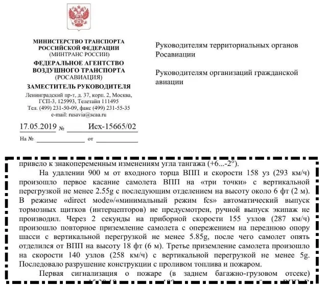 Выводы Росавиации подтверждают то, что все мы наблюдали на видео: после первого контакта с землей самолет подпрыгивает, после второго начинает разрушаться и гореть, но снова подпрыгивает и совершает фатальное третье касание.
