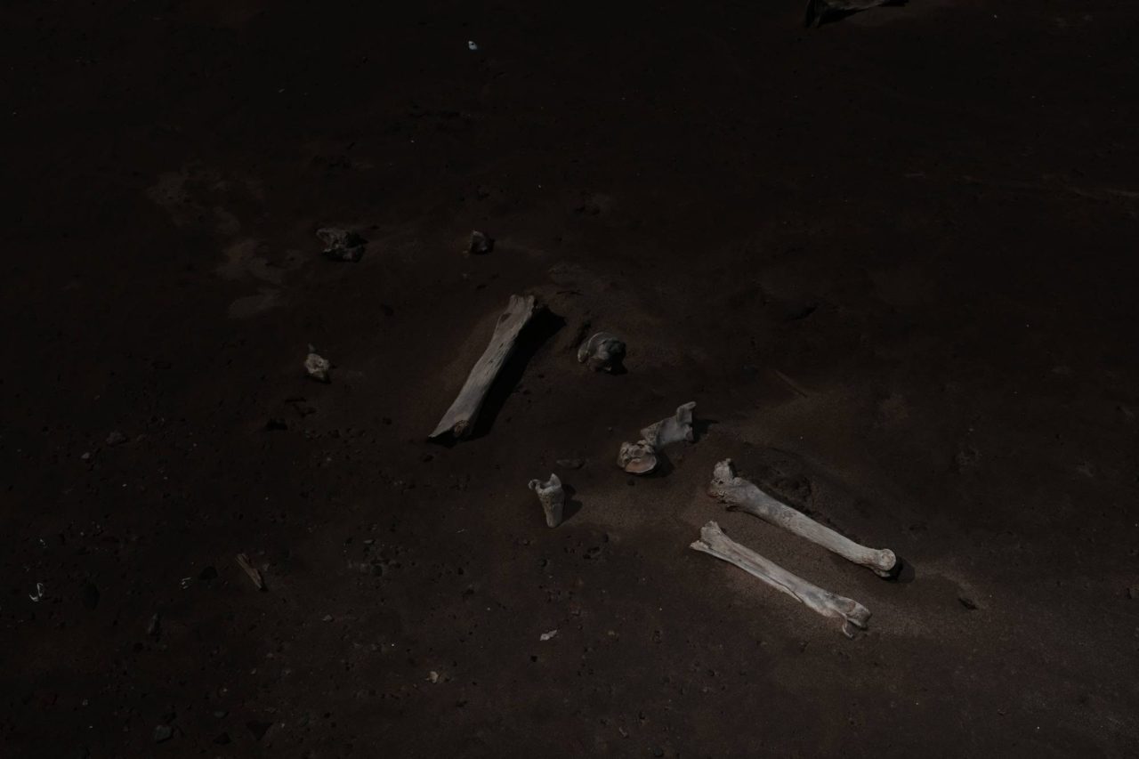 Сейчас, в начале мая, уровень воды низкий. Через пару недель Кама поднимется вновь, а пока на десятки метров вокруг простирается голый песчаный пляж, усеянный корягами, обрывками веревок и редкими камнями. Я спускаюсь на пляж возле четырех высоких тополей и иду вдоль подмытого берега. Поначалу не встречается ничего особенного — только разная ветошь и птичьи гнезда в береговом выступе. Но сразу после памятника из прутьев под ногами появляются кости. Я поднимаю из песка первую из них и кручу в руках — раньше прикасаться к человеческим костям мне не приходилось.
