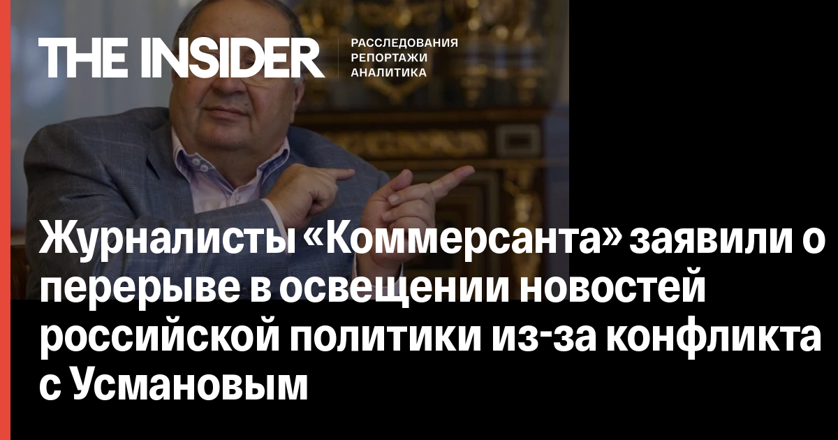 Журналисты «Коммерсанта» заявили о перерыве в освещении новостей российской политики из-за конфликта с Усмановым