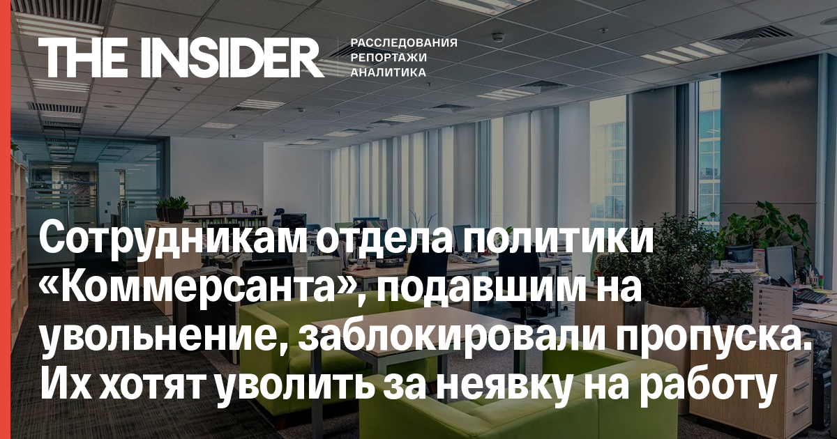 Сотрудникам отдела политики «Коммерсанта», подавшим на увольнение, заблокировали пропуска. Их хотят уволить за неявку на работу