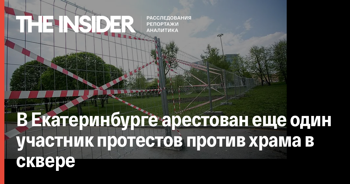 Верх-Исетский суд Екатеринбурга арестовал еще одного участника протестов против строительства на месте сквера храма Святой Великомученицы Екатерины.