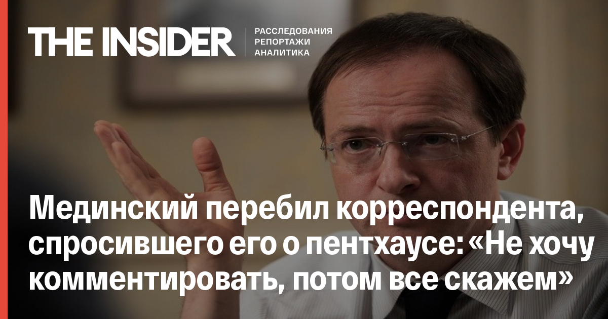 Мединский перебил корреспондента, спросившего его о пентхаусе: «Не хочу комментировать, потом все скажем»