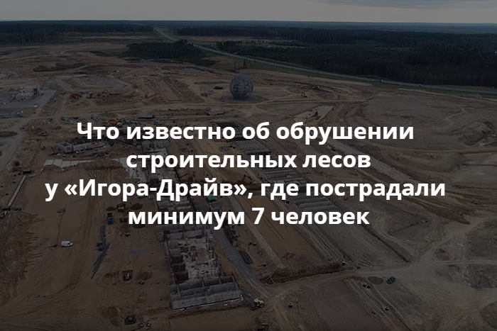 На стройке гоночной трассы «Игора-Драйв» в Приозерском районе Ленобласти 27 мая произошло обрушение строительных лесов и части трибуны для зрителей. Пострадали семь человек, одного из них в тяжелом состоянии госпитализировали на вертолете.