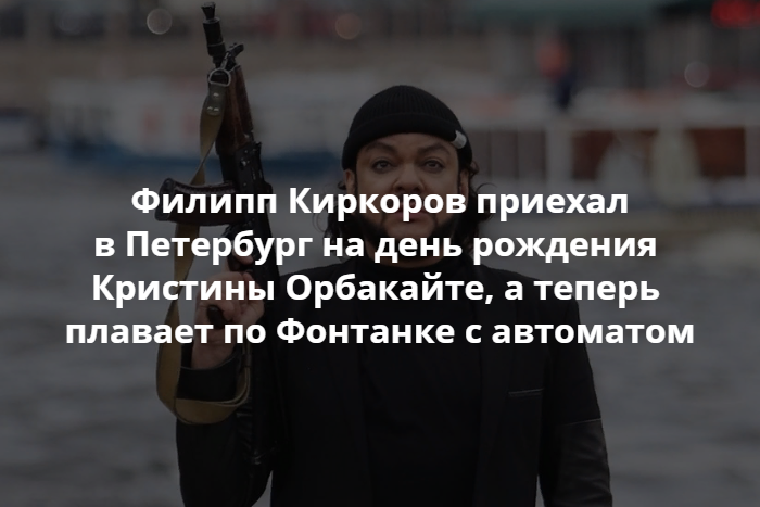 Филипп Киркоров на несколько дней приехал в Петербург. Он плавал по рекам на теплоходе в компании Кристины Орбакайте, фотографировался с поклонницами и со Стасом Михайловым. Киркорова также видели на катере с автоматом Калашникова — предположительно, это были съемки клипа.