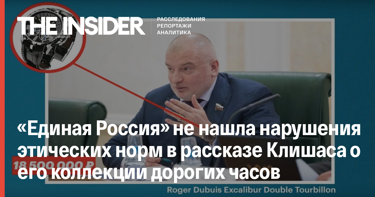 Рассказ члена Совета Федерации Андрея Клишаса о коллекции дорогих часов не является нарушением этических норм «Единой России». Об этом говорится в ответе партийной комиссии по этике на запрос «Открытых медиа».