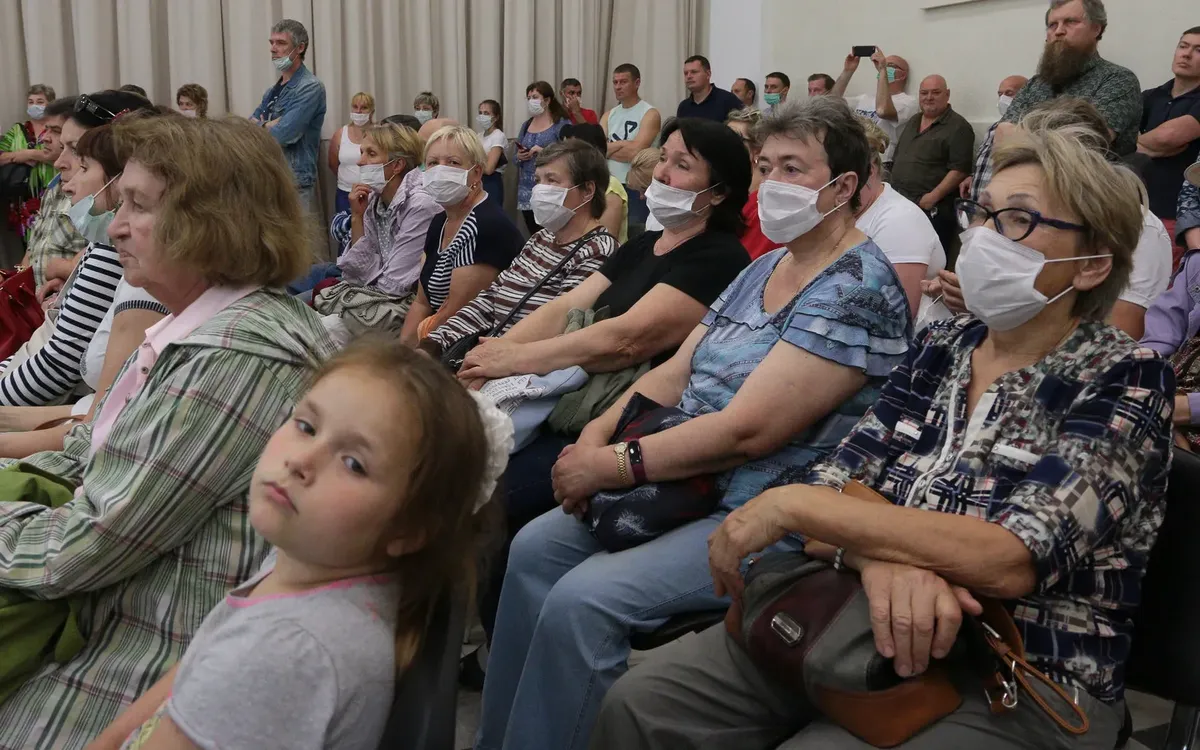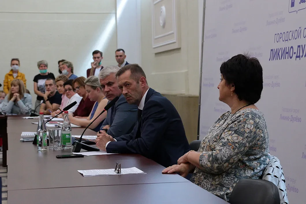 В большом белоснежном зале для заседаний, в отличие от фойе, прохладно. В центре зала за несколькими столами, расставленными в виде огромного квадрата, сидят депутаты городского округа Ликино-Дулево, глава округа Андрей Юрьевич Буянов и с десяток чиновников, не принимающих участия в голосовании. За спиной у депутатов — активисты. Места сесть всем не хватило — сидят только бабушки и дети. Остальные стоят вдоль стены в ожидании. Все 150 человек. На лицах — медицинские маски: должна же власть понимать, что «загоняет народ в экологическое гетто».