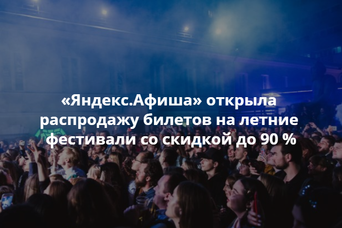 Сервис «Яндекс.Афиша» 29 мая запустил распродажу билетов на летние фестивали, спектакли и концерты со скидкой.