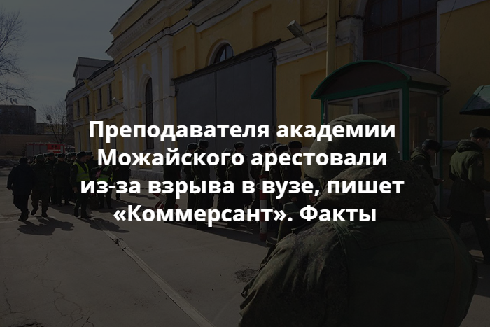 «Коммерсант» написал, что из-за взрыва в академии Можайского арестовали Рифата Закирова. Его обвиняют в хищении и хранении взрывчатки