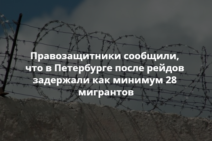 В Петербурге после рейдов среди мигрантов из-за отказа диаспор помочь в расследовании драки задержали как минимум 28 человек. Об этом сообщила член петербургской ОНК и правозащитница Яна Теплицкая.