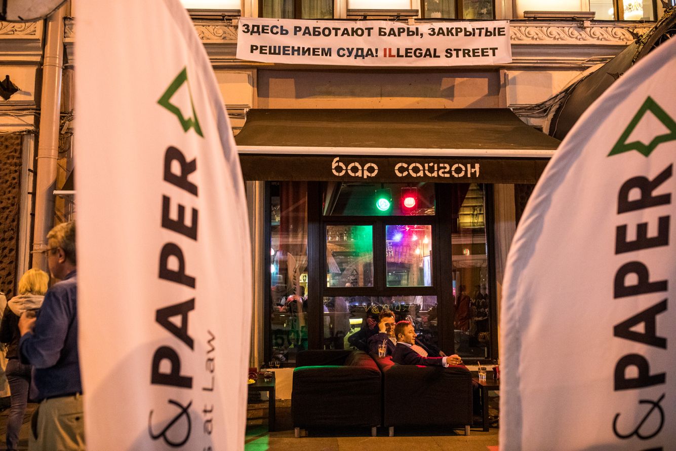«Вы курите — мы дышим»; «Закон на беззаконной улице» — такие плакаты вывесили на своих домах жильцы улицы Рубинштейна в Петербурге днем 16 мая 2019 года. В этот день там прошла вечеринка «Legal Street» — развлекательная часть ежегодного Петербургского международного юридического форума. Он проводится с 2011-го при поддержке президента и министерства юстиции; в нем участвуют тысячи людей. Ради юристов закрыли на весь день улицу Рубинштейна: к домам и барам пускали только тех, у кого было приглашение на вечеринку или документы, доказывающие, что человек тут прописан.