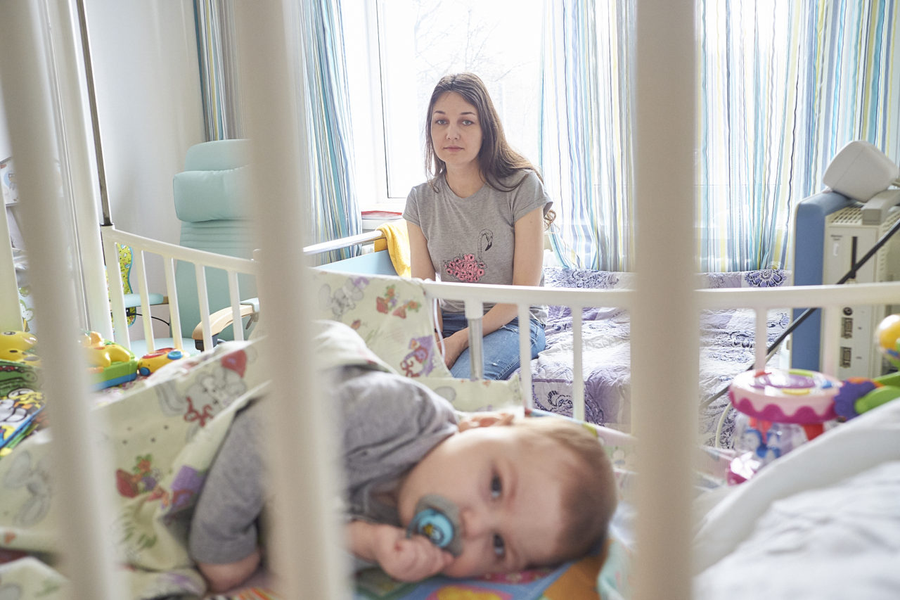 Все время, пока мы разговариваем, он держит дочку на руках, легонько покачивая. Соня молчит, иногда негромко покряхтывает, закрывает глаза, будто собираясь спать, но почти сразу открывает. Ей плохо, тяжелая интоксикация: два раза в неделю через маленький подключичный катетер ей вливают химиопрепараты, два раза в день — гормональные. Так лечат Сонино основное заболевание: неуточненный первичный иммунодефицит.