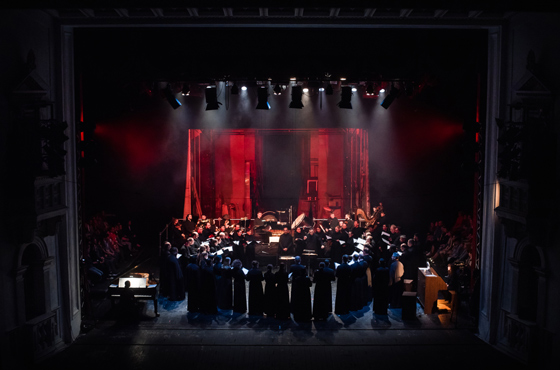 А еще тут бывает, что музыканты вообще не выходят на поклоны. Потому что они — не музыканты, а жрецы. А театр — не театр, а храм. А слушатели — не слушатели, а паства. И это все серьезно, без ухмылки и постмодернистских кавычек. И самое удивительное, что в это почти всегда веришь. Центральным событием фестиваля было посвященное Арво Пярту совместное выступление двух хоров-побратимов — MusicAeterna под управлением Виталия Полонского и ByzantiAeterna под управлением Антониоса Кутруписа, почетного правого певчего кафедрального собора Святого Георгия в Венеции, соученика Курентзиса по Санкт-Петербургской консерватории. Если волшебный коллектив Полонского уже давно пребывает в статусе непреходящей ценности, то 12 выпускников греческих школ византийской музыки (слегка подзамерзших при выходе из самолета в майский пермский мороз, но оттаявших в легендарной «Пельменной № 2») — новички. Хор ByzantiAeterna основан в 2018 году по инициативе Курентзиса. В программе Festina lente («поспешай медленно» (лат.)) коллективы можно было распознать только на слух — темнота, все в рясах, сцена Пермского театра напоминает алтарь, древние византийские песнопения перемешаны с музыкой Пярта, своей шершавой землистостью оттеняя ее стерильную чистоту. Смирение в зале нарушают немногие уходящие, смирение на сцене — некоторые многозначительные излишества в мизансценировании. Аплодисменты не предусмотрены.